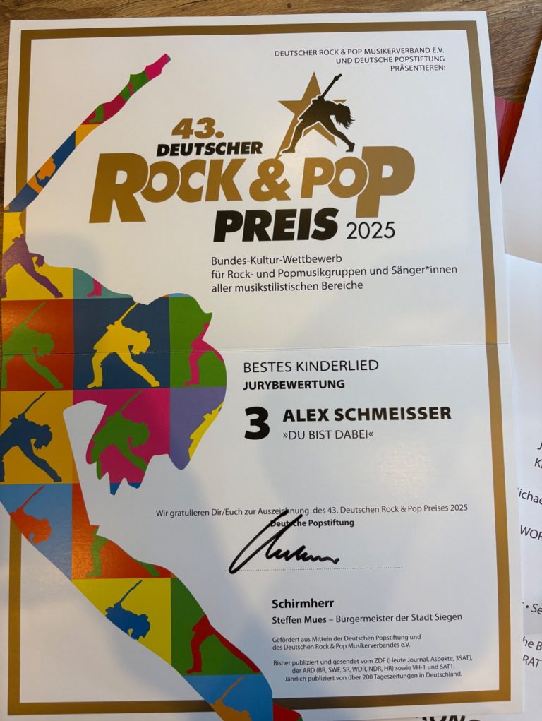 - 2025 bekommt der Song zum „Du bist dabei“ (zum Thema Inklusion) den Preis der deutschen Pop-Stiftung in der Kategorie „Bestes Kinderlied“.